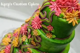 Von allen Ideen für Gartenhochzeitstorten entscheiden sich die meisten Leute für ein Blumenthema, weil es leicht zu traditionellen Hochzeitszeremonien passt und auf dem Ausstellungstisch elegant aussieht. Ein zusätzlicher Bonus ist, dass praktisch jeder Kuchendekorateur mit der Herstellung von Blumen aller Art vertraut ist. Sie sollten also keine Probleme haben, jemanden zu finden, der Ihren Kuchen backt, wenn Sie Blumen darauf betonen. Beachten Sie jedoch, dass Sie einige Möglichkeiten haben: