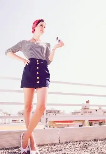 - Ein High-Rise-Stil vermittelt die Illusion eines längeren Rocks, selbst wenn Sie Ihre Beine in einem Kleidungsstück zeigen, das weit über den Knien endet.
