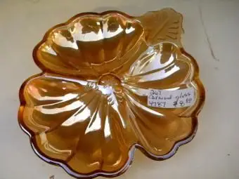Karnevalsglas istPressglasmit Mineral- oder Metallsalzen, die während des Herstellungsprozesses hinzugefügt werden, um den schillernden Regenbogen von Farben zu erzeugen, in dem es kommt. Karnevalsglas hat seinen Namen von der Tatsache, dass es von 1907 bis 1925 ein üblicher Preis auf Karneval war Geschäfte, jedoch trotz seines Namens. Karnevalsglas wurde in den 1960er und 1970er Jahren wieder populär und wurde noch bis in die 2000er Jahre in geringeren Mengen produziert.